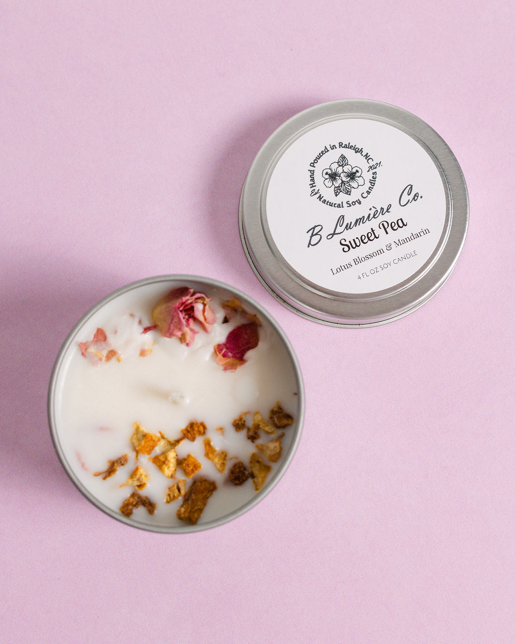 - 🕯️ Botanical Candle – A calming candle topped with dried petals, perfect for setting a soothing, cozy atmosphere.